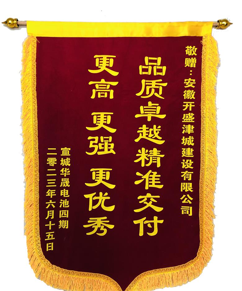 2023年6月15日,光伏產業標準化廠房建設三期工程項目部收到業主單位安徽華晟新能源科技有限公司送來的錦旗,以此感謝我公司提供的高標準、高質量、高效率的服務。